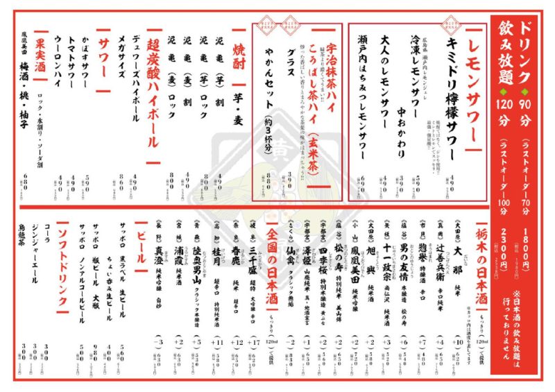 食事、ドリンクラストオーダー22:30 - 定休日